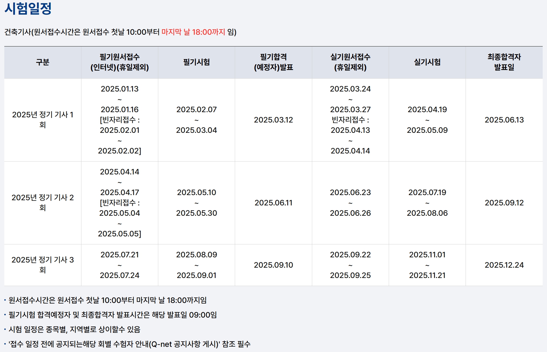 정확한 일정은 한국산업인력공단(Q-Net)에서 발표되므로, 반드시 공식 사이트를 확인해야 합니다.