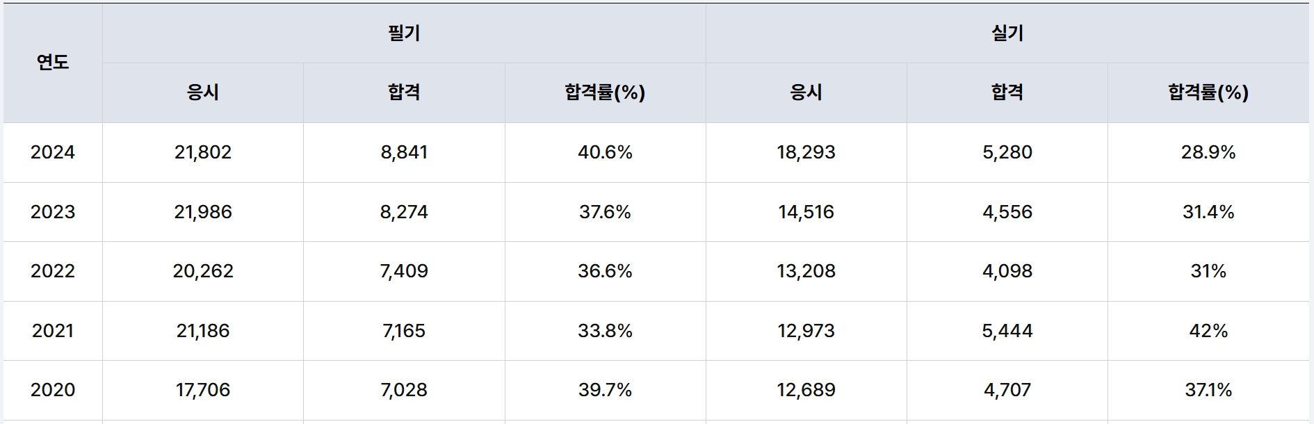 최근 5개년 합격률 정보는 공식 자료를 참고하세요.