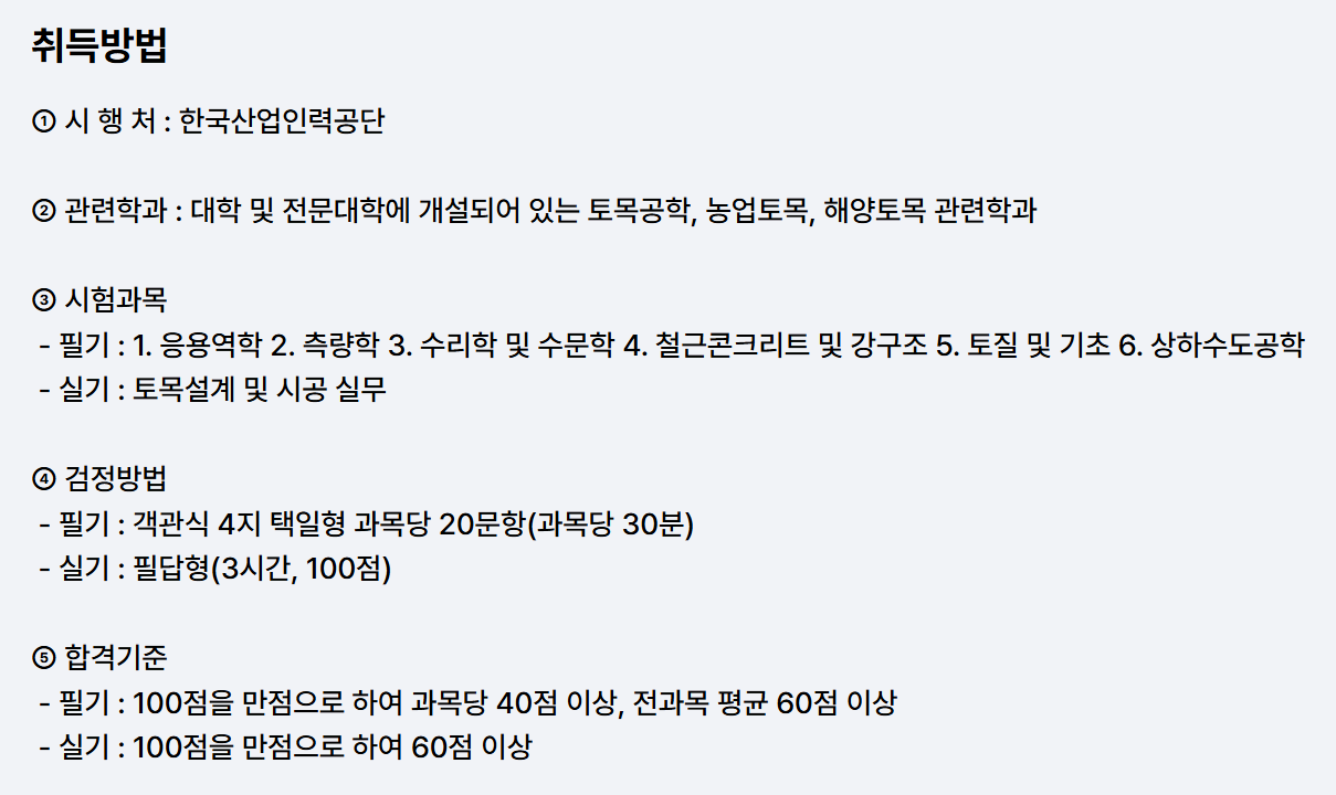 - 관련 전공(토목공학, 건설공학 등) 학사 이상 학위 소지자